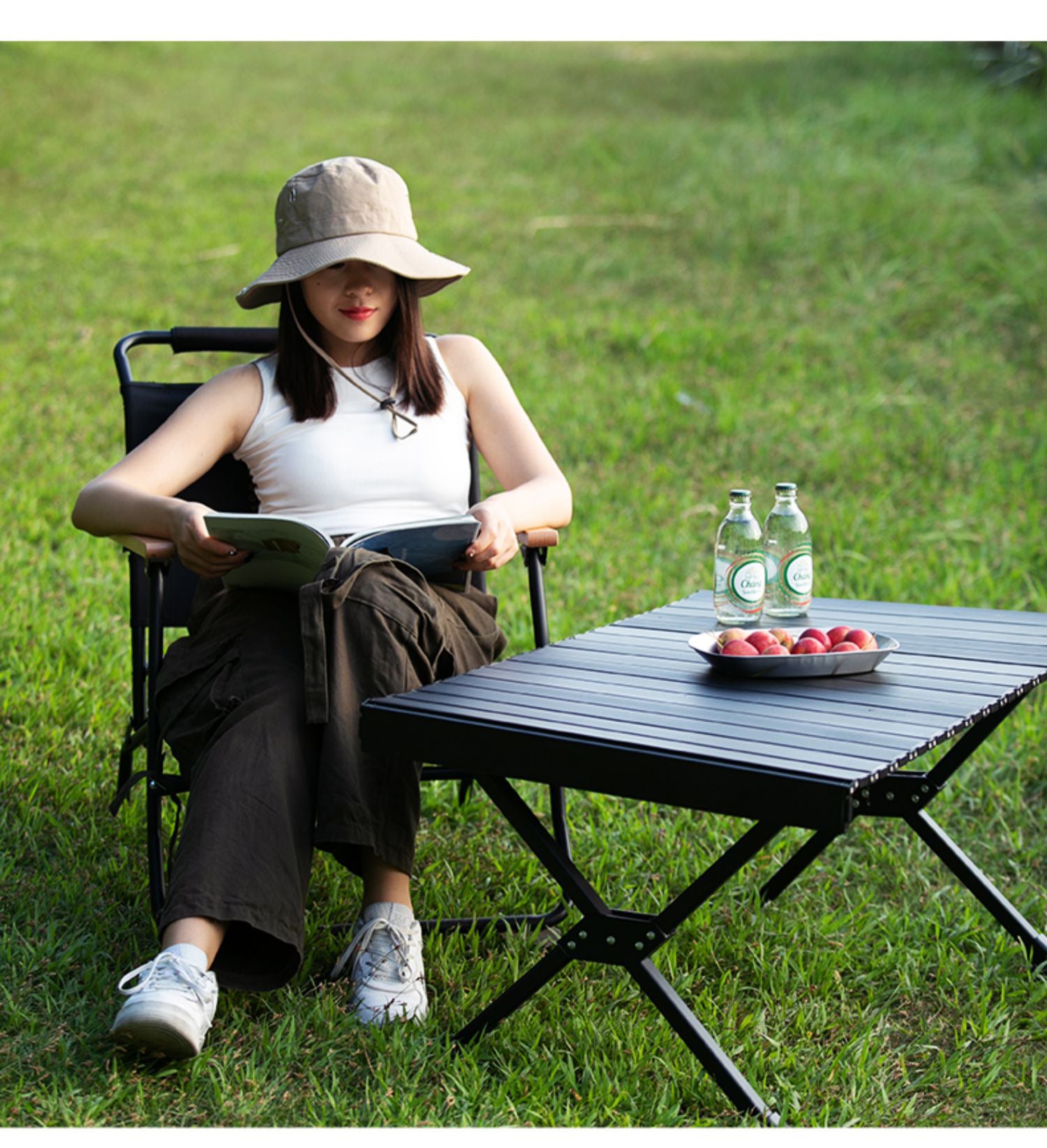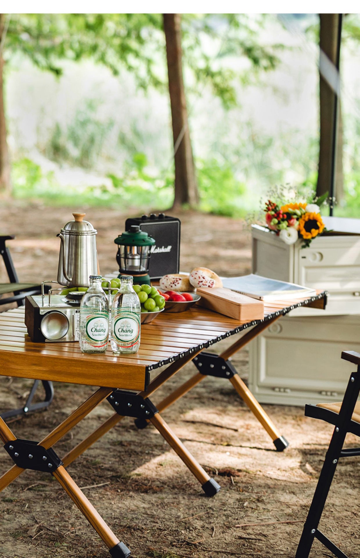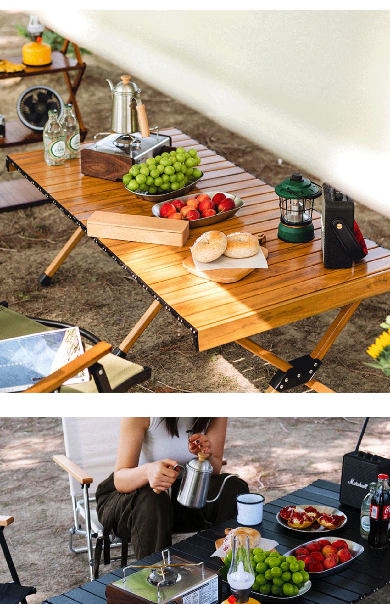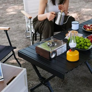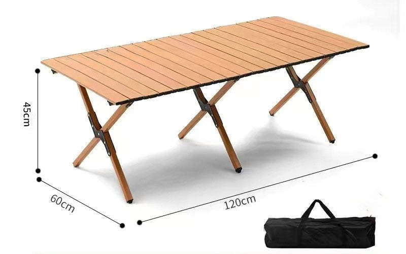 🪵 「広々天板なのに、折りたたみでサッと持ち運び。」