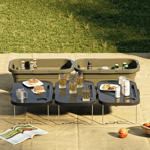ふたはまな板やテーブルとして取り外し使用ができキャンプサイトで活躍する事間違いなし!